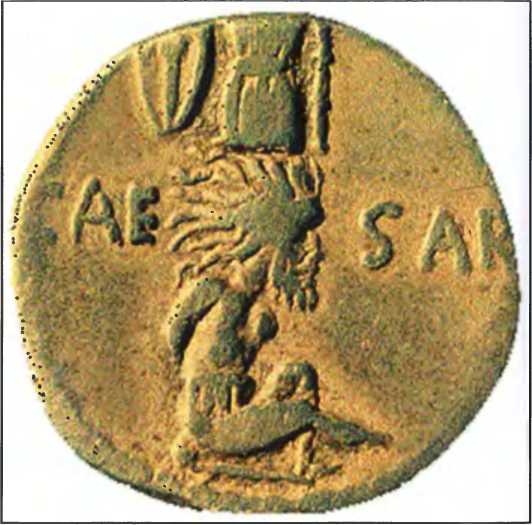 Изображение пленённого Верцингеторикса на римской монете 42 г. до н.э.