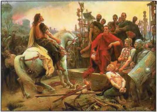 Верцингеторикс кладет свое оружие к ногам Юлия Цезаря после битвы в Алезии в 52 г. до н.э. Художник J1.H. Руайе. 1899 г.