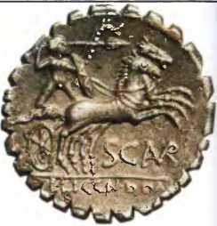 Кельтский воин на боевой колеснице. Римская монета. Около 110 г. до н.э.