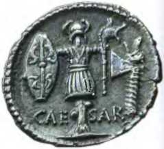 Изображение военной амуниции галлов на римской монете I в. до н.э.