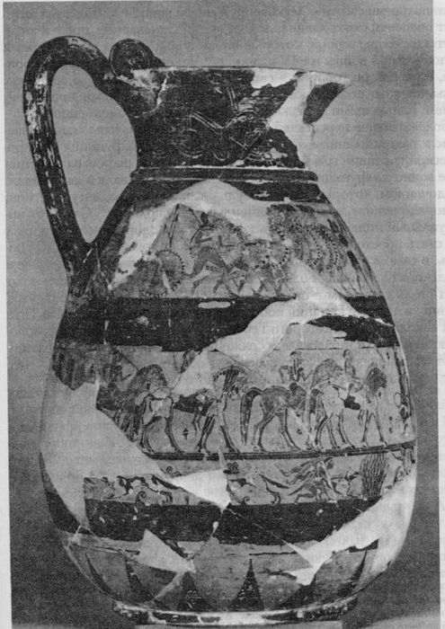 Рис. 1. Всадники и охотники. Кувшин из Киджги, ок. 625 г. до н. э. (Рим, Вилла Джулия, № 2279)