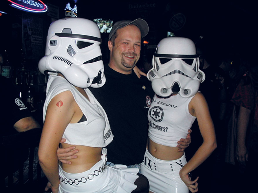 Они создали сайт и стали размещать на нем картинки о своих похождениях: в магазинах комиксов, на ярмарках, на выпускных в младших классах – где только могли. Джонсон сочинил шутки про двух штурмовиков, всегда путающихся под ногами у Дарта Вейдера. Своему персонажу он дал имя ТК-210,[23] обитателя камеры 2551 на Звезде Смерти. Уже через несколько недель еще четыре штурмовика прислали им свои фотографии. Это было до «Фейсбука», до флешмобов, до того как с приходом XXI века начался золотой век гиков. Интернет еще не стал толком местом сбора фанатов «Звездных войн», не говоря уже о владельцах костюмов штурмовиков. Но как-то они встретились.