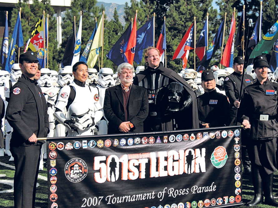 Марк Фордхэм, на тот момент глава 501-го Легиона и их главный Дарт Вейдер, демонстрирует силу Легиона на Параде Роз в 2007 вместе с гранд маршалом Джорджем Лукасом. Оба мечтали превратить свою организацию во франшизу.