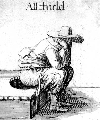 Пытаясь то ли шокировать, то ли вызвать отвращение, то ли весьма грубо повеселить читателей, Томас Деккер не останавливается на закрытом стуле: он советует своим «лохам» «пригласить из-за стола ближайшего друга, чтобы он поговорил с вами, пока вы сидите в отдельной комнате». Сообщив всем о наиболее неприятном для окружающих процессе организма, вы еще и должны были заставить кого-нибудь присоединиться к вам, покидая столовую и направляясь в другую комнату, где вам поставили закрытый стул. Это все равно, что сейчас пригласить кого-нибудь пойти вместе с вами в кабинку общественного туалета.