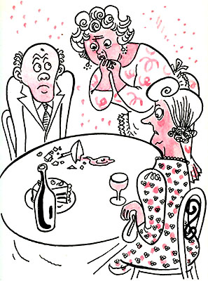 Между хозяином и хозяйкой должна быть полная согласованность. Мужу следует прилагать все усилия, чтобы развлечь гостей, улаживать неприятности, которые всегда могут возникнуть. Случиться, например, что кто-либо из гостей опрокинет стакан, зальет скатерть, самого себя и, — что всего хуже, — своего соседа. Дело, конечно, неприятное, но раз случилось — ничего не поделаешь. Ни одно пятно еще не было смыто бесконечными извинениями. Тотчас принимать меры, чтобы исправить грех, тоже неуместно. Если вы, скажем, облили белое платье соседки красным вином, то не пытайтесь тут же его чистить. Скажите, что чувствуете себя очень виноватым и просите прощения, но не рассыпайтесь в извинениях.