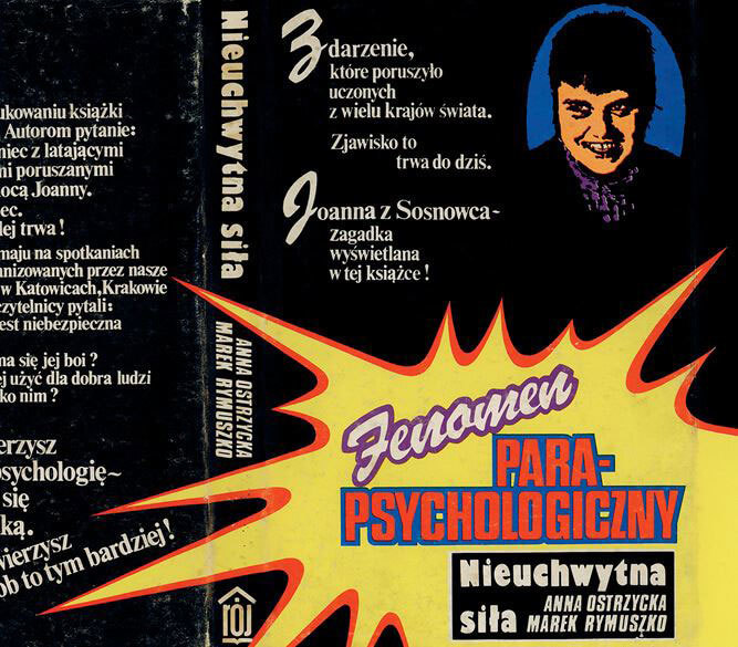 Марек Пшибылик, репортер газеты «Жиче Варшавы», который все восьмидесятые и начало девяностых проведет, путешествуя по базарам и наблюдая эволюцию польской торговли, заглядывает и к букинистам, где находит множество публикаций на эту тему, конечно, в виде ксерокса. «Среди книг, направленных на формирование духа, я нашел “Хиромантию”, “Египетский сонник”, “Карма-йогу” – об изменении человека, “Силу гипнотизма и увеличение энергии”, “Важнейшие пророчества и предсказания”, “Любовные позы”, “Гаданье на картах, или Персидская каббала для каждого знака Зодиака”. <…> Книги, помогающие сочетать силу воли и силу удара, сто?ят в пять раз дороже. Можно приобрести “Искусство растяжки и удара”. При помощи подобных книг можно овладеть “Парализующим искусством кунг-фу” или Best karate, научиться “Подсечке в системе карате, дзюдо и самообороне”». Совсем скоро этот тренд подхватят издательства первого ряда. Возглавит их Instytut Wydawniczy Zwi?zk?w Zawodowych, который наряду с фантастическими романами и руководством по сексуальным позам издаст множество книг о траволечении, с аккуратными разноцветными обложками, довольно строгими, с характерными для эпохи шаблонов «Летрасет» косыми рядами букв. Издательство R?j опубликует «Неуловимую силу» Анны Остшицкой и Марка Рымушко, репортаж об Иоанне из Сосновца – девушке, обладающей способностью к психокинезу, не меньшей, чем Ури Геллер. За плечами авторов книги был опыт и солидная марка. Рымушко, впоследствии основавший журнал «Неизвестный мир», уже в то время был лауреатом премии имени Ксаверия Прушиньского и автором нескольких сборников репортажей, главным образом судебных. По обложке «Неуловимой силы» этого никак нельзя заметить. Она невольно возвестила неизбежно приближающиеся новые тренды в оформлении книг. Заглавие занимает немного места, оно приглушено яркими анонсами: «парапсихологический феномен», «Иоанна из Сосновца – загадка, разгаданная в этой книге!», а на последней стороне обложки беспощадное: «Внимание!» Это вид передачи послания, который, с одной стороны, наводит на мысль об импортных товарах, кричащих: new, neu, nouveau, а с другой – буквенный horror vacui польской предвоенной рекламы. Чем гуще, тем лучше – словно графики хотели отразить всю надежность и практичность модернизма, словно кто-то выпустил из бутылки джина анархии и маркетингового барокко.