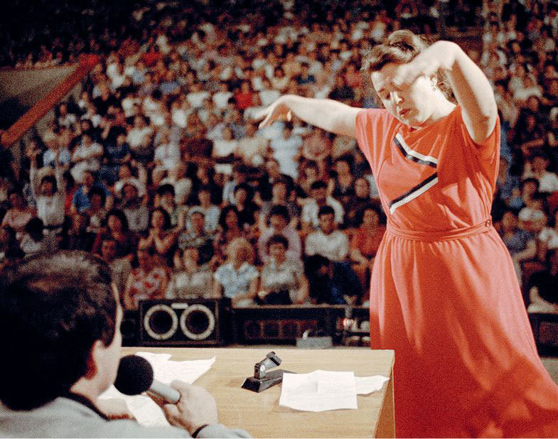 Внизу: терапевтический сеанс Анатолия Кашпировского, Киев, 1989