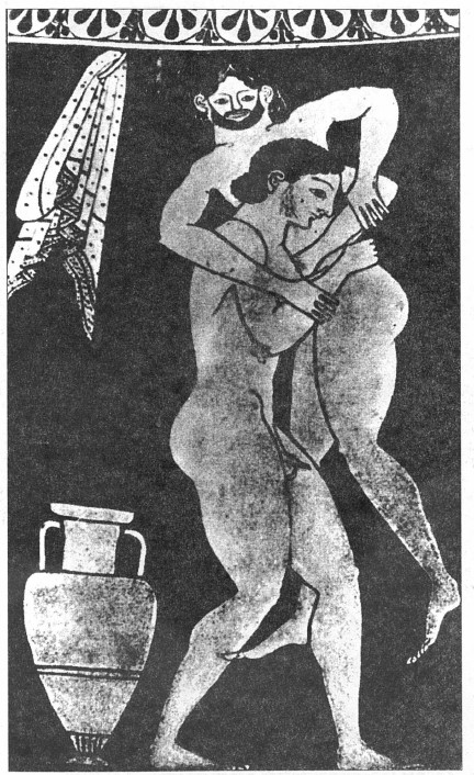 12. Борцы на тренировке. Краснофигурное изображение на амфоре.