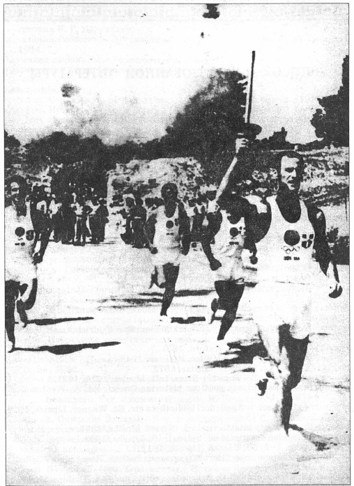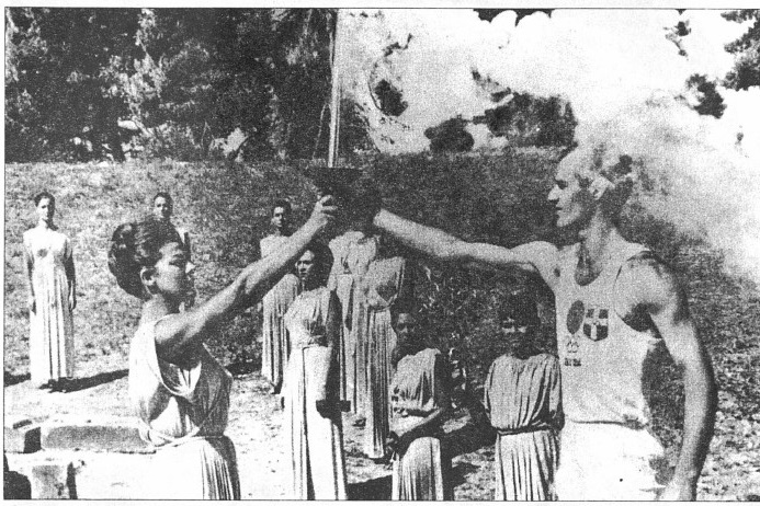 21. Зажжение, священного олимпийского огня в Олимпийской долине у храма Геры и вручение факела первому бегуну