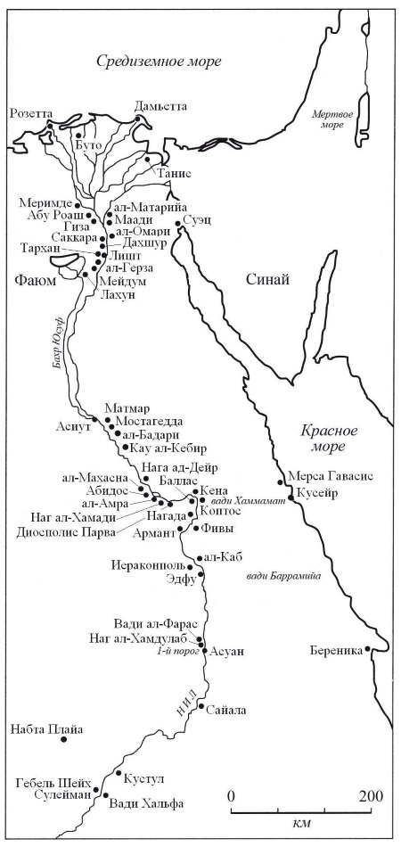 Карта 1. Египетско-нижненубийский Нил: основные археологические памятники и населенные пункты, рассматриваемые и упоминаемые в книге
