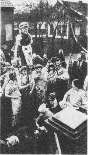 Масленица. Группа девушек с чучелом Мажаны (Marzanna), символизирующим зиму и смерть (д. Судол, Опольское воеводство, Польша). 1976 г.