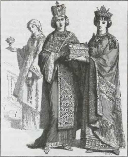 Наряды византийской императрицы и ее окружения. Иллюстрация XIX века