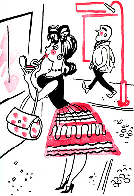 О своем безукоризненном внешнем облике и безупречном поведении на улице должны особенно заботиться женщины и девушки — ведь они привлекают внимание всех прохожих, и судят их строго. Выходя из дому или с работы, женщина должна привести свой туалет в полный порядок, чтобы неприятности с одеждой случались лишь в виде исключения. Подкрашивать губы, пудриться, причесываться, поправлять чулки и т. п. на улице недопустимо. Выбежать утром за покупками в соседний магазин в домашнем халате и ночных туфлях более чем предосудительно.