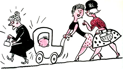 Часто приходится идти по тротуару или переходить через улицу в местах, где очень сильное движение. К людям, которые мешают вам пройти, обратитесь со словами: «Разрешите пройти» или «Пропустите, пожалуйста». Особое внимание нужно проявлять к женщинам с детьми и пожилым людям. Если мать везет ребенка в колясочке, уступите ей дорогу так, чтобы она могла легко пройти, не сходя с тротуара. Конечно, и мамаши должны считаться с прохожими: если, например две-три женщины остановятся на тротуаре с колясочками, — а это иногда приходится видеть — то совершенно преградят дорогу и заставят прохожих обходить их по мостовой. Если вы заметите, что женщина с детской колясочкой хочет войти в вагон трамвая или троллейбуса или же выйти из него, помогите ей без просьбы с ее стороны.