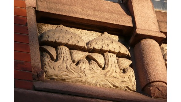 Весьма оригинально молодой зодчий решил и внешнее убранство постройки. Традиционные христианские символы во входном портале – крест и изображения священных пеликанов, – которые намекали на связанные с Христом обряды Крещения и Причащения, соседствовали с фризами, заполненными стилизованным растительным и анималистическим декором. Как справедливо заметила финская исследовательница П. Корвенмяя, «царство зверей и птиц служит своеобразным подступом к гуманистическому миру», открывающемуся внутри церкви.