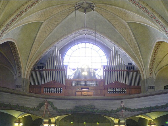 Дополнительным украшением интерьера церкви стал и его замечательный 50-регистровый орган, специально изготовленный в городе Лахти мастером Альбанусом Юрвой. Для музыки в пространстве храма была создана хорошая акустика. Как верно заметила финский искусствовед Паула Кивинен, «в этой церкви послание Христа, и вправду, могло дойти до слушателя». Это, по сути, и был тот самый, воспеваемый в модерне, синтез искусств…