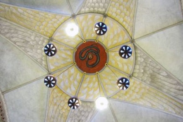 Во фреске на потолке храма Х. Симберг представил мифического змия, с яблоком греха, зажатым в широко раскрытой пасти. Изображение органично вписано в овал, заключенный в кольцо из бесчисленных маленьких крыльев, которые символизируют защиту ангелов, под которой находится душа. У церковнослужителей, посетивших культовое здание незадолго до церемонии открытия, эта фреска вызвала вопросы и неприятие. «Змея в храме? – говорили они. – Не слишком ли это богохульно?». Уже после открытия церкви была создана специальная комиссия. Согласно её решению в мае 1907 года, фреску все-таки было решено оставить без изменений.