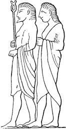 Правда, они почти отказались от своей длинной, похожей на женскую, нижней (полотняной) и верхней (шерстяной) одежды (рис. 20), а со времени Пелопоннесской войны и вплоть до того, как к ним пришла азиатская роскошь, одевались по-древнеэллински, однако всегда любили одежду, драпирующуюся множеством складок, и предпочитали носить хитон, а поверх него плащ. Отсутствие нижней одежды считалось у них признаком бедности.