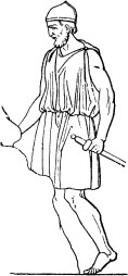 Во всем остальном ионийская мужская одежда не отличалась от дорической ни внешним видом, ни способом ношения. Разве что хитон, кроме рукавов, отличался от дорического еще и тем, что делался до конца персидских войн из льняной ткани (см. рис. 20).