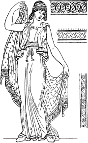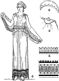 Эта одежда была, однако, не ионийского, а карийского происхождения, так как в древности все греческие женщины одевались одинаково и носили одежду, которую впоследствии (при Геродоте) называли дорийской.