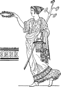 Прозрачное покрывало, прикреплявшееся к косе, было принадлежностью костюма замужних женщин. О нем упоминается у Гомера (Ил., XVII, 382; XXII, 469).