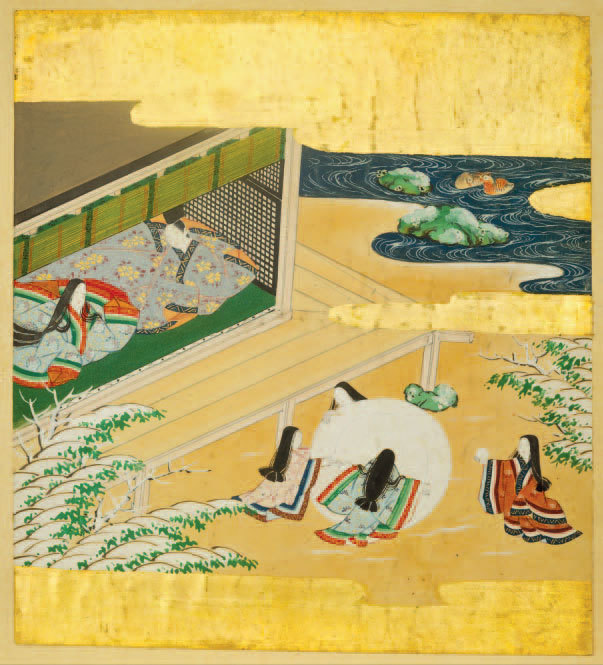 Сцены и каллиграфия из альбома «Повесть о Гэндзи» (Гэндзи-моногатари)