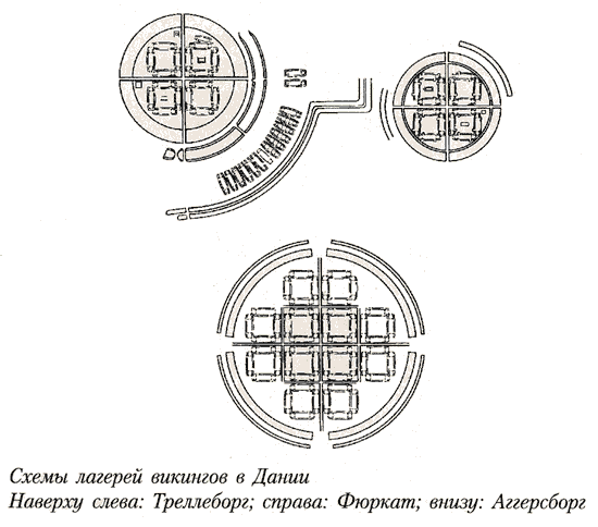 Происхождение и назначение датских лагерей X–XI вв. — одна из многочисленных загадок, которые оставили нам викинги. Может быть, легенда о викингах из Йомсборга все-таки как-то связана с существованием этих лагерей? Как бы ни решился вопрос о строителях Треллеборга, Аггерсборга и других бургов, ясно одно: это лагеря датские. Не считаться с их характеристикой при оценке викингов и их походов невозможно.