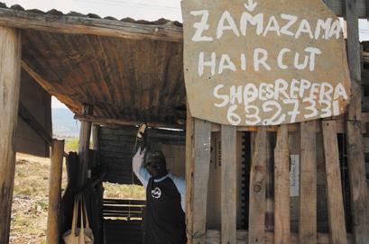 В африканском государстве Свазиленд по дороге от города Манзини к городу Мбабане расположен центр торговли и услуг. За овощными рядами и жестяными мастерскими стоят самодельные палатки из фанеры и картона. Здесь можно подстричься или починить разбитую обувь. Инструменты для этих операций хранятся в одних и тех же металлических коробках.