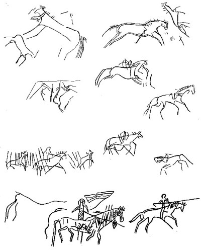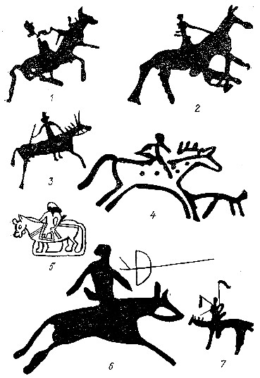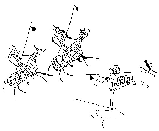 Рис. 62. Всадники с горы Бичигтын-хад (Бэгэр сомон)