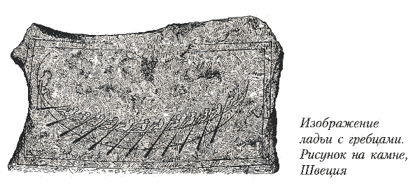 В VIII–XI вв. викинги не знали себе равных на море. Мореплавание было известно жителям Скандинавского полуострова с очень древних времен. Среди наскальных изображений, относящихся к неолиту и к бронзовому веку, много раз встречаются рисунки ладей. В бронзовый век корабль становится самым распространенным, излюбленным сюжетом скандинавских мастеров наскального рисунка. Корабль играл, по-видимому, видную роль среди религиозных представлений тогдашнего населения Скандинавии[14]. Изображения кораблей сохранились и от раннего железного века. Судя по картинам того периода, у скандинавов существовали большие весельные ладьи, поднимавшие значительное число воинов; носовая и кормовая части украшались высоко вздымающимися резными головами животных. С течением времени формы изображаемых древними художниками судов совершенствуются, что могло отражать прогресс как в технике живописи, так и в кораблестроении. Затем появляются погребения, над которыми устанавливались ряды камней, имитировавшие контуры корабля. Задолго до эпохи викингов (как и в течение ее), наряду с такими погребениями, знатных людей стали хоронить в ладьях, которые помешались в курганах. Наиболее ранние могилы с людьми датируются примерно 500 г. н. э., т. е. относятся к эпохе «Великих переселений народов». По мнению некоторых археологов, подобная практика восходила к еще более раннему времени.