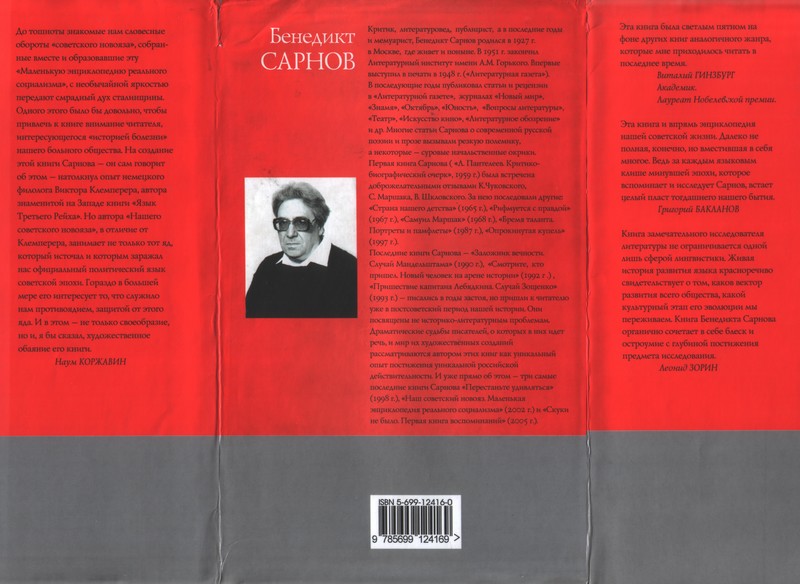 До тошноты знакомые нам словесные обороты «советского новояза», собранные вместе и образовавшие эту «Маленькую энциклопедию реального социализма», с необычайной яркостью передают смрадный дух сталинщины. Одного этого было бы довольно, чтобы привлечь к книге внимание читателя, интересующегося «историей болезни» нашего больного общества. На создание этой книги Сарнова — он сам говорит об этом — натолкнул опыт немецкого филолога Виктора Клемперера, автора знаменитой на Западе книги «Язык Третьего Рейха». Но автора «Нашего советского новояза», в отличие от Клемперера, занимает не только тот яд, который источал и которым заражал нас официальный политический язык советской эпохи. Гораздо в большей мере его интересует то, что служило нам противоядием, защитой от этого яда И в этом — не только своеобразие, но и, я бы сказал, художественное обаяние его книги.