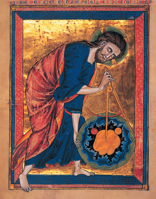 Бог – архитектор Вселенной – измеряет мир циркулем. Морализованная Библия. около 1250.