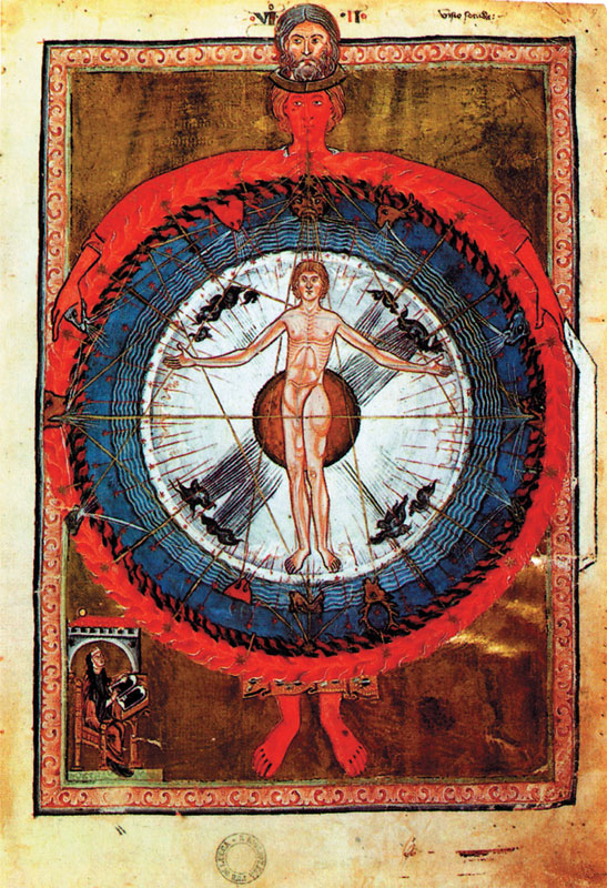 Творение Вселенной и Космического человека из Откровений Хильдегарды Бингенской. 1230. Государственная библиотека, Лукка