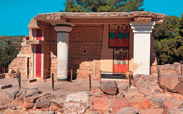 Пропилеи Кносского дворца с сохранившимися фресками «шествия с дарами»
