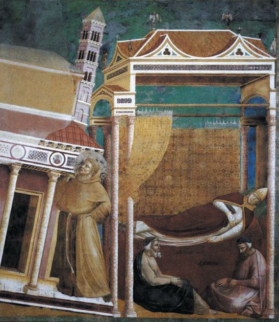 Джотто ди Бондоне. Серия фресок «Легенда о святом Франциске Ассизском». Сон Папы Иннокентия III 1297–1299. Базилика святого Франциска в Ассизи, верхний храм