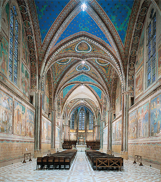 Интерьер верхнего храма базилики святого Франциска в Ассизи, Италия