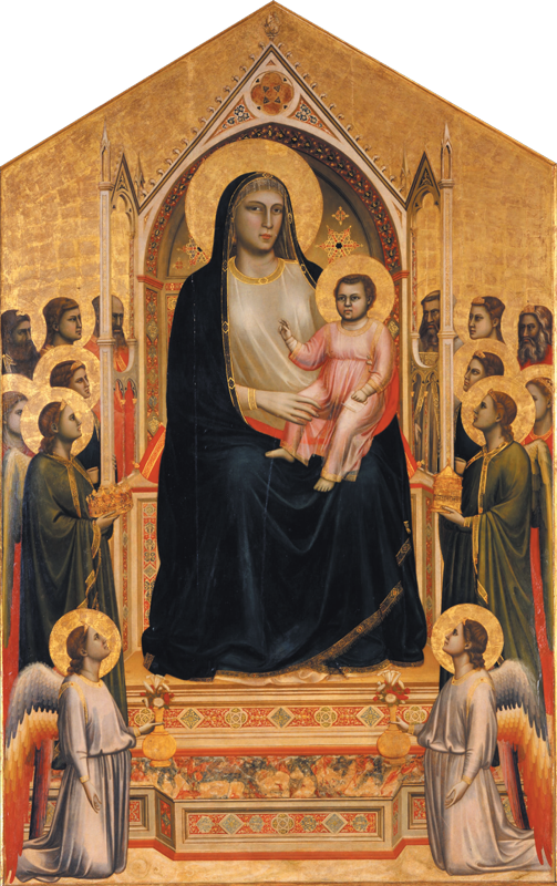 Джотто ди Бондоне. Мадонна с младенцем, ангелами и святыми. 1306–1310. Галерея Уффици, Флоренция