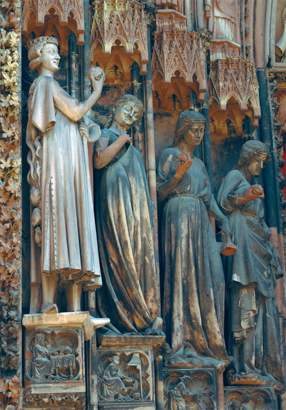 Скульптурная композиция «Искуситель и Неразумные девы». Южный боковой портал фасада Страсбургского собора, Франция