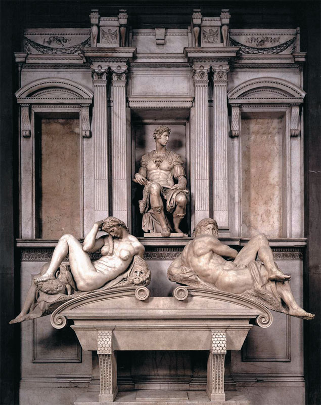 Микеланджело Буонаротти. Гробница Джулиано Медичи. Скульптуры «Ночь» и «День» около 1526–1534. Капелла Медичи, Флоренция