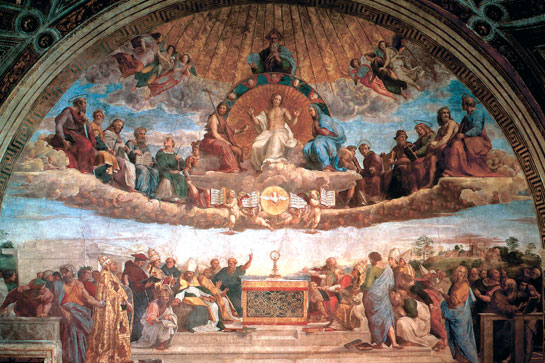 Рафаэль Санти. Диспута. 1509–1511. Станца делла Сеньятура, Ватикан