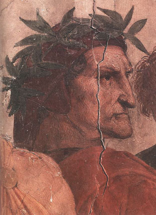 Рафаэль Санти. Диспута (фрагмент). Потртет Данте. 1509–1511. Станца делла Сеньятура, Ватикан