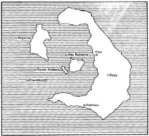 Раскопки на вулканическом острове Фера начались, собственно говоря, уже довольно давно — их история насчитывает более ста лет. Когда в 1859 г. Фердинанд Лессепс начал строительство Суэцкого канала, он обратил внимание на отличную водонепроницаемость здешних вулканических пород. При их добыче на Ферасии, островке, образующем северо-западную часть миниатюрного Ферского архипелага, в 1866 г. были обнаружены следы древней человеческой деятельности, скрытые мощными слоями вулканических извержений. Первые раскопки проводили здесь французы, прежде всего Ф. Фуке. Затем Фера стала вотчиной немцев: Ф. Гиллер фон Гертринген в середине 90-х годов прошлого века начал здесь раскопки греческого города второй поло -вины I тысячелетия до н. э., а Р. Цан обнаружил на юге главного острова под слоем лавы остатки домов середины II тысячелетия до н. э. Но открыть сколько-нибудь значительное поселение той эпохи тогда не удалось.