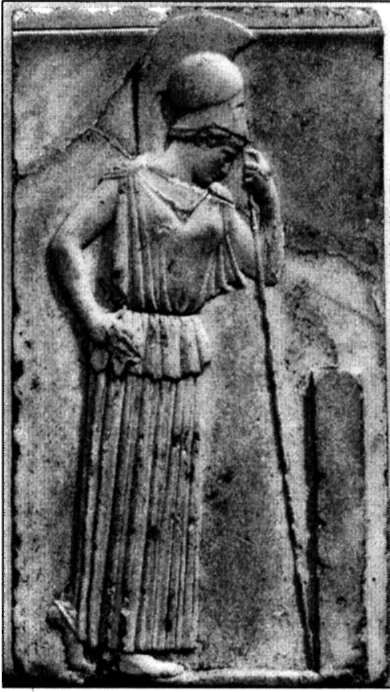 Так называемая «задумавшаяся Афина». Мраморный рельеф с афинского акрополя. Между 470—450 гг. до н.э