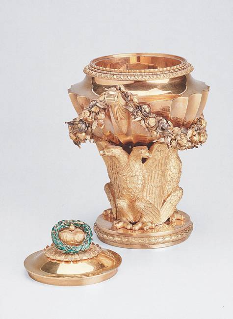Рис. 15. Иоганн-Вильгельм Кейбель. Солонка. Золото, серебро, эмаль; литьё, чеканка, гравировка. 16,2 ? 8,6 см. 1818–1825 гг. ГЭ