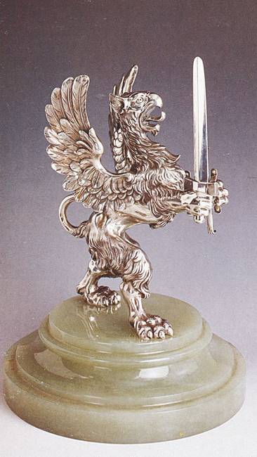 Рис. 39. Романовский грифон. Фирма Фаберже, мастер Юлий Раппопорт. Серебро, нефрит. До 1899 г. ГЭ