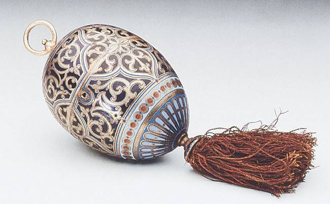 Рис. 51. Лампада в форме пасхального яйца. Фирма братьев Грачёвых, мастер-монограммист «АП». Серебро, медь, эмаль. 1880-е гг. ГЭ