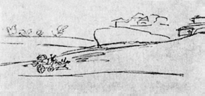 Берег Урала недалеко от Нижнеозерной крепости. Рисунок А. С. Пушкина (1833).