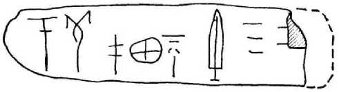 Рисунок 15. Табличка Ra 1540 из Кносса с текстом слогового письма to-sa pa-ka-na tosa phasgana — «столько мечей», идеограммой меча (более вероятно — кинжала) и числовым обозначением 50