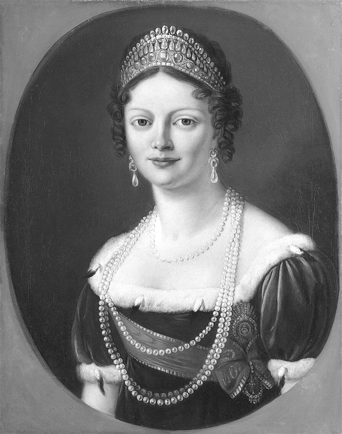 Немного спустя после восшествия на престол Император назначил фрейлиной княжну Варвару Волконскую, первую в его царствование. По обычаю она получила шифр Императрицы, и все фрейлины великой княгини Елизаветы тоже получили шифр Императрицы Елизаветы. В тот же день Императрица Мария, узнав об этом простом и обыкновенном в таких случаях назначении, потребовала от Императора, чтобы впредь все фрейлины и придворные дамы носили портреты и шифр обеих Императриц. Этот случай не имел примера в прошлом, но в то время Императрица могла получить все от своего сына.