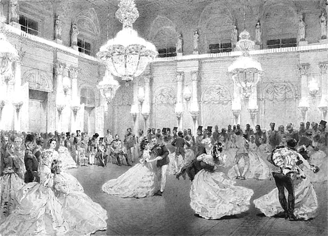 В шестнадцать лет я получила шифр фрейлины. Их было тогда двенадцать. Почти каждый день я была при дворе. По воскресеньям бывало собрание «большого Эрмитажа», на которое допускались дипломатический корпус и особы первых двух классов, мужчины и женщины. Собирались в гостиной, где появлялась Императрица и поддерживала разговор. Затем все следовали за ней в театр; ужина не было. По понедельникам бывал бал и ужин у великого князя Павла. По вторникам я была дежурной. Мы проводили вместе с подругой часть вечера в бриллиантовой комнате, названной так потому, что там хранились драгоценности и между ними корона, скипетр и держава. Императрица играла в карты со старыми придворными. Две фрейлины сидели около стола, и дежурные придворные занимали их.